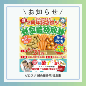 8月31日 (日) 野菜イベントを開催いたします‼|福島市ゼロスポ鍼灸院・整骨院/整体院 福島西