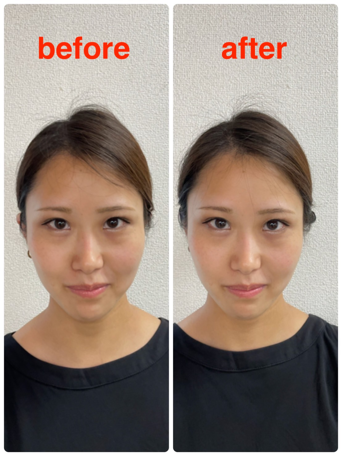 左が治療前で右が治療後になります。1回の施術でここまで変化が出ています。